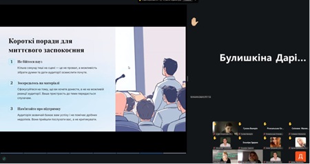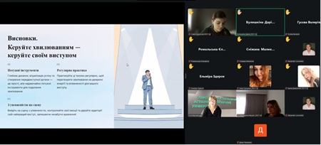 Під час засідання здобувачі освіти активно працювали з матеріалом, підготувавши ґрунтовні повідомлення і долучившись до жвавого обговорення ключових аспектів успішного публічного мовлення.