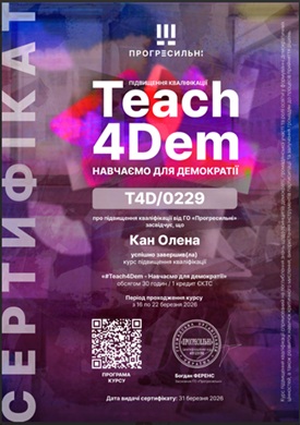 Співробітники навчально-методичного відділу Херсонського державного аграрно-економічного університету взяли участь в онлайн-курсі підвищення кваліфікації #Teach4Dem — «Навчаємо для демократії», який відбувся з 16 по 20 березня 2026 року.