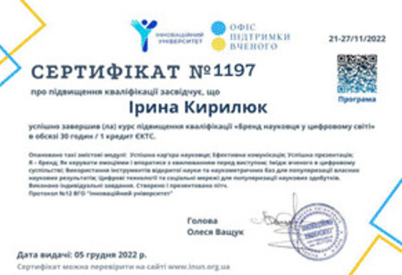 - Кирилюк І., Чвертко Л. Використання соціальних мереж у сучасних комунікативних процесах закладів вищої освіти. Development of sustainable communications of higher education institutions in social media: the collective monograph. Edited by Z. Dabrowski, W.Duranowski, L. Huliaieva, A.Oliinyk. Warsaw, Zofia Zamenhof Foundation, 2023. p. 32-41. URL:https://figshare.com/articles/book/Development_of_sustainable_communications_of_higher_education_institutions_in_social_media_the_collective_monograph_Edited_by_Z_Dabrowski_W_Duranowski_L_Huliaieva_A_Oliinyk_Warsaw_Zofia_Zamenhof_Foundation_2023_366_p_/24814065