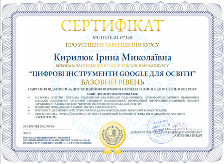Дуга В.О. – Почесна грамота Департаменту освіти, науки та молоді Херсонської обласної державної адміністрації