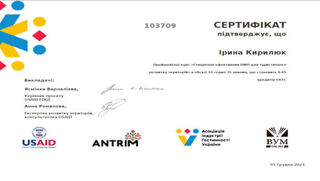 - Hranovska, V.H., Krykunova, V.M., Morozova, O.S., Katsemir, Y.V., & Voloshchuk, v.v. (2021). determinants of the development of hotel and restaurant enterprises of ukraine in the intersectoral industry of services. geojournal of Tourism and Geosites, 35(2), 537–547.