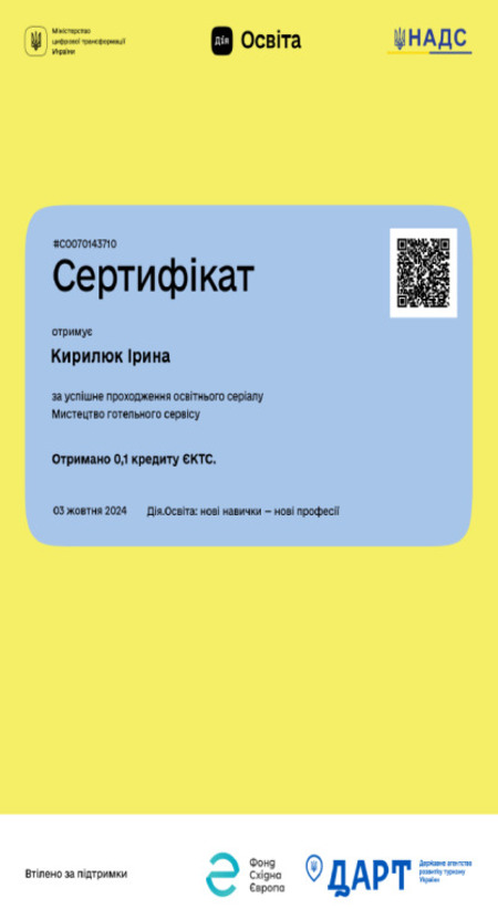 - Благополучна А., Кирилюк I., Поворознюк І., Ляховська Н., Литвин О. Культура професійного спілкування в індустрії гостинності: її значення та вплив. Економічні горизонти. 2022. №2(20). С. 4–11. DOI: https://doi.org/10.31499/2616-5236.2(20).2022.261844