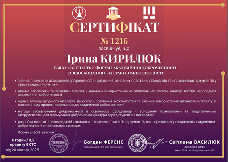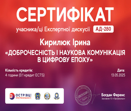- підготовка наукових текстів (доповідей, тезисів, статей) для участі у Всеукраїнських та Міжнародних конференціях;