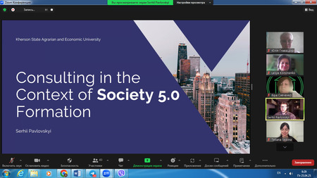Не менш цікавою була доповідь Сергія Павловського — здобувача третього (освітньо-наукового) рівня вищої освіти Херсонського державного аграрно-економічного університету. У своїй доповіді він розглянув сучасні виклики та перспективи розвитку консалтингу в умовах формування Суспільства 5.0, акцентуючи увагу на ролі інноваційних підходів у трансформації економічного середовища. (Consulting in the Context of Society 5.0 Formation).