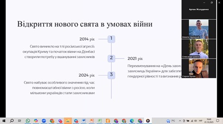 Онлайн-зустріч об’єднала студентів різних курсів, які змогли долучитися до обговорення історичних витоків свята та його значення сьогодні. Учасники дізналися про зв’язок цих дат із Покровою Пресвятої Богородиці та традиціями українського козацтва, а також про роль козаків у формуванні державності України.