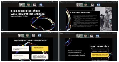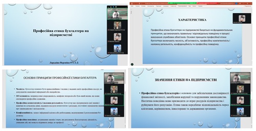В межах дисциплін та запланованої теми гуртка «Вплив сучасних тенденцій розвитку суспільства на організацію і методику бухгалтерського обліку та оподаткування» здобувачі презентували цікаві та актуальні доповіді: