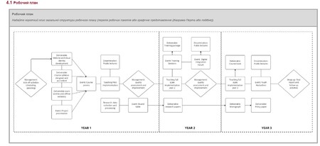 - дослідження та підготовка аналітичного документу (policy paper), а також наукових публікацій у журналах Scopus/WoS і наукової монографії;