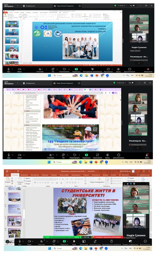 15 жовтня 2025 року відбулася профорієнтаційна зустріч викладачів кафедри Землеустрою, геодезії та кадастру з учнями 11-го класу Херсонського ліцею № 27 Херсонської міської ради.