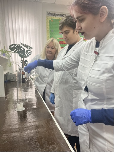 Темою заняття стало визначення якісного складу харчових продуктів — одного з ключових етапів аналітичного контролю у харчовій промисловості. Метою практикуму було ознайомлення студентів із сучасними хімічними методами ідентифікації основних компонентів харчових систем. Заняття було присвячене визначенню якісного складу харчових продуктів методами аналітичної хімії — зокрема білків, жирів, вуглеводів та органічних кислот. Під час хімічного практикуму студенти досліджували натуральні зразки харчових продуктів, спостерігали хімічні реакції, що дозволяють встановити наявність окремих компонентів, та вчилися робити первинні висновки щодо їх складу і якості.