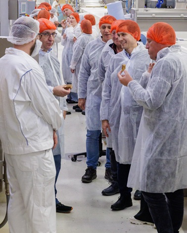 Під час візиту делегація мала змогу ознайомитися з технологічними процесами виробництва сухих сніданків та енергетичних батончиків. Щороку на підприємстві переробляється близько 170 тисяч тонн зерна вівса, пшениці та кукурудзи.