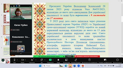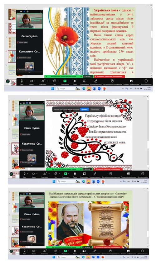 27 жовтня 2025 року, куратором Жанною ШАТАЛОВОЮ, було проведено кураторську годину зі здобувачами другого (магістерського) рівня вищої освіти першого року навчання спеціальності G18 Геодезія та землеустрій, присвячену Дню української писемності та мови.