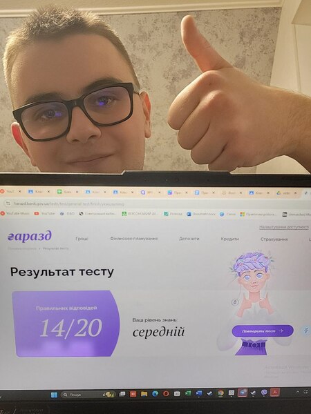 Тестування — це не лише перевірка знань, а й можливість практично відпрацювати навички, що стануть у пригоді кожному. Ми пишаємося нашими здобувачами вищої освіти та їхнім прагненням до саморозвитку і фінансової самостійності. Продовжуємо навчатися, вдосконалюватися та впевнено рухатися до фінансово грамотного й успішного майбутнього. Так тримати!