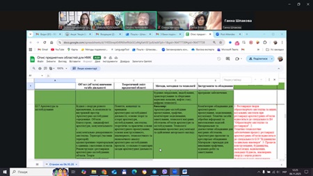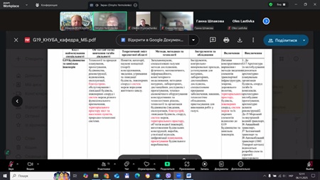 На цьому засіданні було наведено та обговорено усі пропозиції зацікавлених сторін з приводу уточнення і внесення зауважень по покращенню визначення предметної області спеціальності G19 «Будівництво та цивільна інженерія».