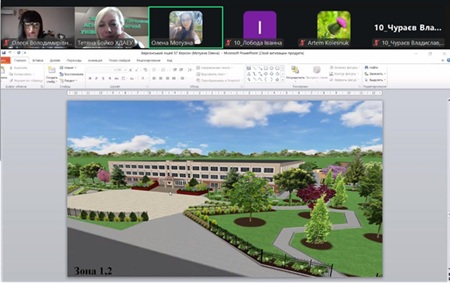 Олена МОТУЗНА презентувала освітній спільноті проєкт озеленення ліцею, який вона виконала в рамках написання своєї магістерської роботи.