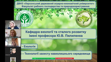 Спершу доцент Алмашова В.С. на он-лайн заході представила презентацію з усіма спеціальностями Херсонського ДАЕУ та детально ознайомлено з «Довідником абітурієнта», особливу увагу було приділено спеціальностям «Е2 ЕКОЛОГІЯ» ТА «G2 ТЕХНОЛОГІЇ ЗАХИСТУ НАВКОЛИШНЬОГО СЕРЕДОВИЩА». Вікторія Сергіївна наголосила, що екологічна освіта – це не лише про науку, а й про наш майбутній спосіб життя.