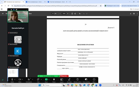 Для здобувачів факультету архітектури та будівництва на передодні початку переддипломної практики відбулися зустрічі з керівниками щодо організації проходження практики. На семінарі присвячений організації проведення переддипломних практик Дудяк Наталія наголосила, що основним нормативним документом, який регулює порядок організації, проведення і підбиття підсумків практик у Херсонському державному аграрно-економічному університеті є «Положення про практичну підготовку здобувачів вищої освіти Херсонського державного аграрно-економічного університету».