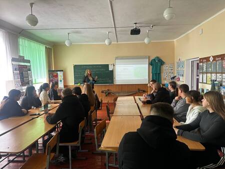 Жанна Володимирівна презентувала освітнє середовище університету, умови вступу, особливості студентського життя, участь студентів у наукових, волонтерських і міжнародних проєктах. Захід пройшов у атмосфері зацікавленості та довіри. Учні виявили активність, ставили змістовні запитання, брали участь у дискусії та охоче обговорювали можливості, які відкриває навчання в університеті.