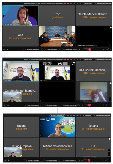 Робота проходила в 5 блоках: Інтеграція України до Європейського та глобального дослідницьких просторів і синергія європейських програм; Інструменти підтримки в рамках конкурсів Європейської дослідницької ради; Успішні історії українських дослідників. Модератором заходу виступив Денис НІКОЛАЙЧУК, спеціаліст із комунікацій відділу «Офіс Горизонт Європа в Україні» НФДУ. З привітальним словом виступив Денис КУРБАТОВ, заступник Міністра освіти і науки України, Кароль МАНСЕЛЬ-БЛАНШАР, керівниця відділу RTD 03 міжнародного співробітництва Європи та Америки Європейської комісії, Доктор Лідія БОРРЕЛЛЬ-ДАМІАН, генеральна секретарка асоціації Science Europe, Сергій БАБАК, голова Комітету Верховної Ради України з питань освіти, науки та інновацій, Єгор ПИВОВАРОВ, експерт з політичних питань у галузі науки та інновацій Представництва ЄС в Україні, Олександра АНТОНЮК, голова Наукового комітету Національної ради України з питань науки та технологій та багато інших діячів причетних до діяльності програми Горизонт Європа в Україні.
