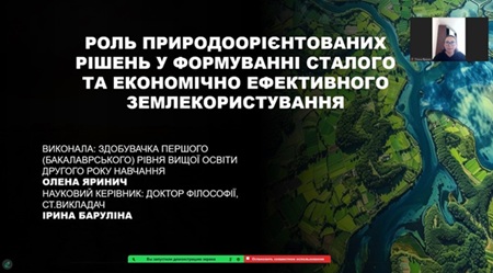 Наукова робота Олени «Роль природоорієнтованих рішень у формуванні сталого та економічно ефективного землекористування» отримала високу оцінку експертів та була визнана кращою серед представлених досліджень.
