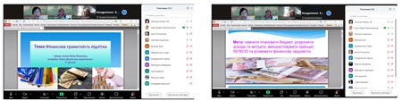 Основна увага під час уроку приділялася формуванню вмінь грамотно керувати особистими коштами: визначати структуру власних доходів і витрат, планувати бюджет та застосовувати популярне правило розподілу фінансів 50/30/20. Заняття проходило у живому інтерактивному форматі: учні виконували практичні завдання, розгадували тематичні ребуси, працювали з кросвордом, ознайомлювались з навчальними матеріалами та брали активну участь у вікторині Kahoot, що створило дружню змагальну атмосферу.