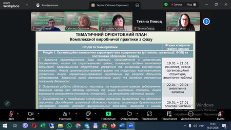 З програмами комплексної виробничої практики за відповідними спеціальностями здобувачів ознайомили професор Світлана Скрипник та доцент Аліна Сакун. Активне обговорення й запитання від магістрів засвідчили їхню зацікавленість і готовність до відповідального проходження практики»