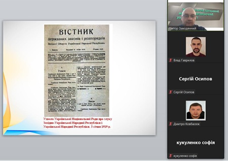 Для кращого сприйняття матеріалу була підготовлена та продемонстрована презентація з архівними фотографіями, історичними документами та картами, що ілюструють події Злуки 1919 року. Візуальний супровід допоміг студентам глибше зануритися в історичний контекст та краще зрозуміти значення цієї важливої дати.