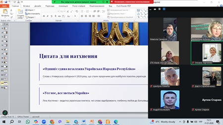 До Дня Соборності України у Херсонському державному аграрно-економічному університеті в дистанційному форматі на платформі Zoom було проведено спільну кураторську годину за участі кураторів кафедри гідротехнічного будівництва, водної та електричної інженерії Зубенко Валентини Олександрівни та Литвиненка Віктора Миколайовича.