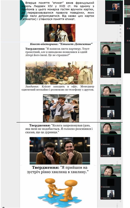 Етикет у бізнесі як мистецтво успіху: онлайн-зустріч викладачів кафедри підприємництва, обліку та фінансів з учнями Зеленівської школи №38