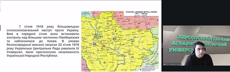 Напередодні знакової для українського державотворення дати у Херсонському державному аграрно-економічному університеті відбувся тематичний захід національно-патріотичного спрямування, присвячений Дню пам'яті Героїв Крут. До онлайн-зустрічі долучилися здобувачі вищої освіти різних спеціальностей, а спікером виступив доцент кафедри соціальних та поведінкових дисциплін Михайло Орлик.