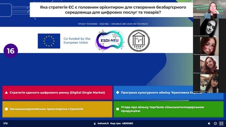 Старт навчання за факультативним курсом «Європейські стратегії цифрової інтеграції для розвитку мережевої економіки» (Erasmus+ Jean Monnet Module ESDI-NEU)