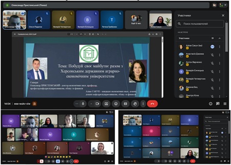 Організатори зустрічі провели онлайн - екскурсію Херсонським державним аграрно-економічним університетом в ході якої ознайомили її учасників з історією університету, надали вичерпну інформацію про факультети, освітні програми та спеціальності, а також наголосили на перевагах навчання в ХДАЕУ та перспективах працевлаштування в майбутньому.