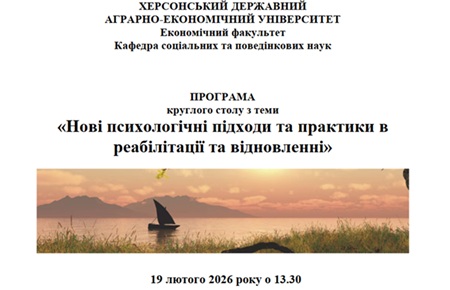 На базі кафедри соціальних та поведінкових наук Херсонського державного аграрно-економічного університету відбувся значущий науково-практичний захід – круглий стіл з теми «Нові психологічні підходи і практики в реабілітації та відновленні». Подія об’єднала науковців, практиків та майбутніх фахівців для обговорення найгостріших викликів сьогодення через призму сучасних психологічних методик.