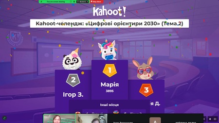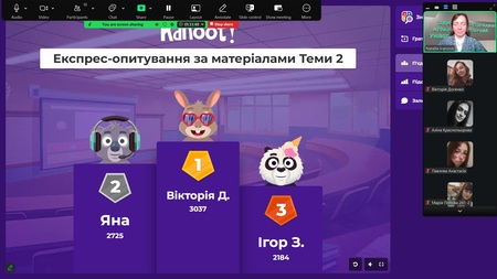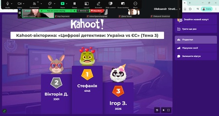 Кожне заняття супроводжувалося Kahoot-челенджами, що дозволяло оперативно перевірити засвоєння матеріалу та підтримувати високий рівень залученості.