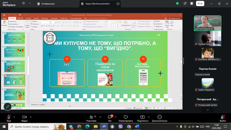 Школярі також дізналися, як розпізнавати маніпулятивні елементи в рекламі: завищені знижки, обмежені в часі пропозиції, створення штучного дефіциту та використання емоційних тригерів. У форматі інтерактивного обговорення учасники аналізували приклади рекламних оголошень і визначали приховані маркетингові прийоми.