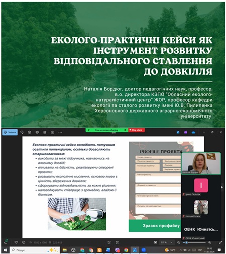 Під час заходу було презентовано результати наукових досліджень на тему «Еколого-практичні кейси як інструмент розвитку відповідального ставлення до довкілля», а також авторський методичний посібник «Проєктні кейси “Екопростір майбутнього України”», що відображає сучасні підходи до формування екологічної культури та практичних навичок здобувачів освіти.