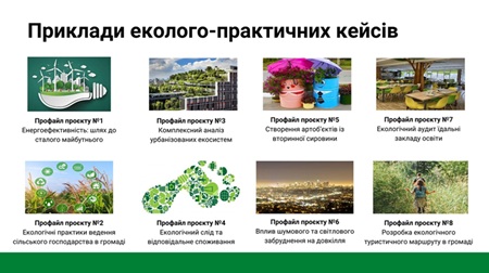 Запропоновані кейси охоплюють широкий спектр актуальних тем – від енергоефективності, сталого сільського господарства та урбаністичних екосистем до оцінки впливу забруднення, відповідального споживання та створення еколого-освітніх просторів у громадах. Такий підхід дозволяє інтегрувати навчання з реальними викликами та сприяє активній участі здобувачів у трансформації довкілля на локальному рівні.