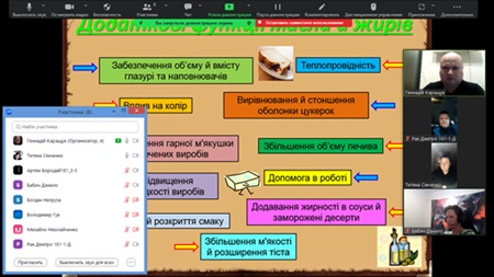 Керівник студентського наукового гуртка, доцент Каращук Г.В. акцентував увагу на додаткових функціях жирів при виробництві хлібобулочних та кондитерських виробів.