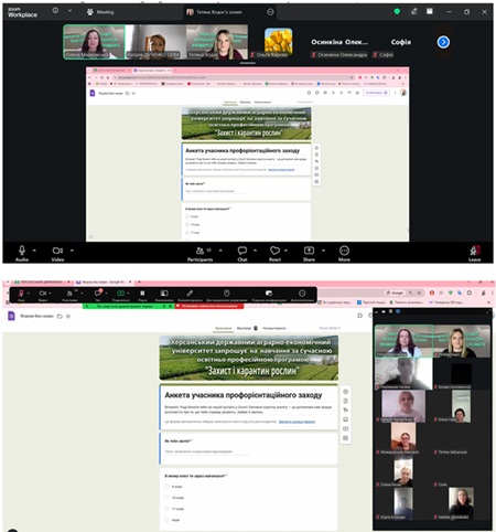 16 та 21 квітня 2026 року на кафедрі ботаніки та захисту рослин відбулися профорієнтаційні зустрічі зі здобувачами освіти 11–12 класів Херсонського ЗЗСО «Центр освіти молоді» Херсонської міської ради та ДНЗ «Херсонське вище професійне училище сервісу та дизайну». Захід провели доктор с.-г. наук, професор Марковська О.Є. та доктор філософії з агрономії, старший викладач Ходос Т.А.