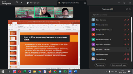 Доцент кафедри підприємництва, обліку та фінансів Тетяна Повод наголосила на важливості дотримання термінів практики, відповідального ставлення до завдань та якісного виконання всіх вимог програми. Детальні роз’яснення щодо організації практики, оформлення звітної документації, порядку проходження та критеріїв оцінювання надала відповідальна за практику від кафедри доцент Світлана Коваль. Учасники заходу відзначили, що виробнича переддипломна практика є важливою складовою підготовки майбутніх фахівців, адже дозволяє поєднати теоретичні знання з реальним професійним досвідом.