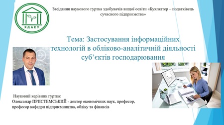 Відбулось січневе засідання наукового гуртка здобувачів вищої освіти «Бухгалтер – податківець сучасного підприємства». Згідно із затвердженим планом та в межах дисциплін до розгляду була представлена тема «Застосування інформаційних технологій в обліково-аналітичній діяльності суб’єктів господарювання».