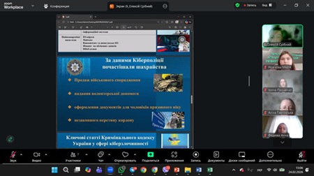 Доброю традицією для ХДАЕУ стала співпраця з Департамент кіберполіції Національної поліції України. З нагоди Дня безпечного інтернету за ініціативи кафедри менеджменту, маркетингу та ІТ відбулася зустріч у змішаному форматі з оперуповноваженим відділу протидії кіберзлочинам у Кіровоградській області Департаменту кіберполіції, старшим лейтенантом поліції Євгеній Сергійович Бондаренко.