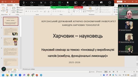У лютому 2026 року в межах роботи наукового гуртка кафедри харчових технологій ХДАЕУ «Харчовик-науковець» відбулося чергове засідання, присвячене сучасній тематиці: «Інновації у виробництві напоїв (комбуча, функціональні лимонади)».