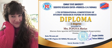 В листопаді 2025 року студенти ХДАЕУ взяли участь у VІІ Міжнародному конкурсі студентських науково-дослідних робіт з економіки, який відбувся в Комратському державному університеті (Республіка Молдова).