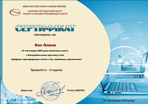 27 листопада 2025 року співробітники навчально-методичного відділу ХДАЕУ взяли участь у Всеукраїнському круглому столі «Цифрова трансформація освіти: стан, проблеми, перспективи», організованому Науково-методичним центром фахової передвищої та вищої освіти.