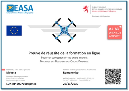 Детальніше...Участь у курсах підготовки пілотів БПЛА категорії А1/а3