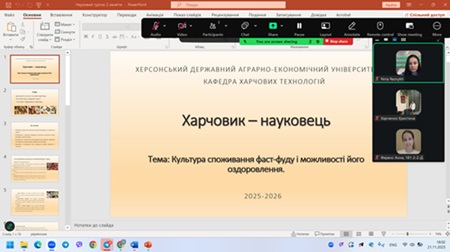 В жовтні 2025 року відбулося чергове засідання наукового гуртка “Харчовик-науковець” кафедри харчових технологій ХДАЕУ на тему: «Культура споживання фаст-фуду і можливості його оздоровлення».