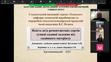 Засідання студентського наукового гуртка «Технолог» на тему: «Якість ягід ремонтантних сортів суниці садової залежно від садивного матеріалу»