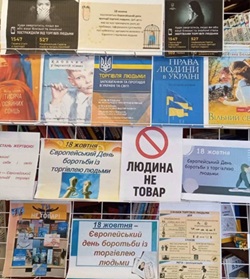 З метою привернути увагу громадськості до цієї теми, розгорнуто книжково-ілюстративну виставку-застереження «Ні - торгівлі людьми». На експозиції зацікавлений читач знайде такі видання: законодавчі акти «Міжнародна Хартія прав людини», «Вступ до прав людини», «Протидія торгівлі людьми: документи», книги «Актуальні аспекти міжнародного співробітництва органів внутрішніх справ України в напрямку протидії торгівлі людьми», «Протидія торгівлі людьми», «Боротьба з торгівлею людьми», «Насильство щодо жінок і дітей», «Якщо жінка пропала без вісти за кордоном: допомога консульських установ України».