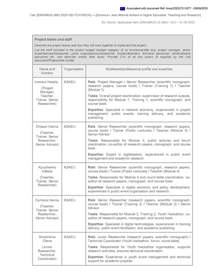 Команда проєкту: Жосан Ганна, к.е.н., доцент; Кириченко Наталя, к.е.н., доцент; Димова Ганна, к.т.н., доцент; Смолінкіна Олена, здобувач 2го року навчання магістерської ОП «Менеджмент диджитал-маркетингу».