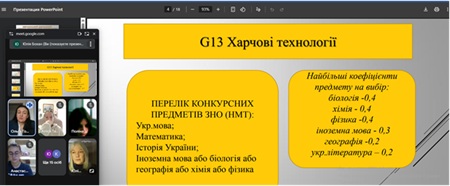 13 жовтня 2025 року для учнів 11 біолого-хімічного та математичного класів КЗ «Ліцей “Науковий” Кропивницької міської ради» відбулася пізнавальна та надзвичайно натхненна он-лайн профорієнтаційна зустріч із викладачами кафедри харчових технологій Херсонського державного аграрно-економічного університету (ХДАЕУ).
